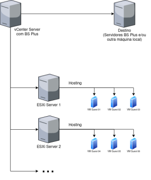 Para o ambiente com o vCenter, o serviço de Backup é instalado no computador vCenter para melhor desempenho.