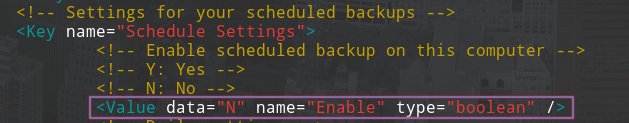 Enable scheduled backup on this computer: habilitar os agendamentos do Conjunto de Backup, altere para “Y”.