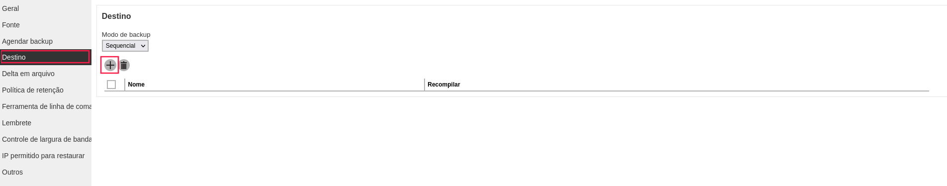 Acesse as Configurações Avançadas, Conjunto de Backup e crie um novo Conjunto de Backup seguindo os seguintes passos: